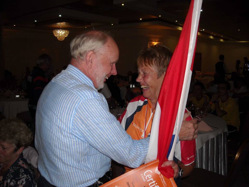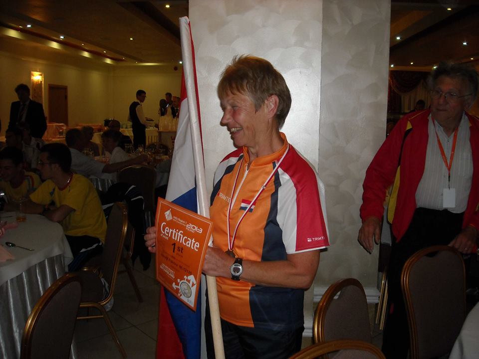 Marc Vanhalst De eerste officiële wedstrijddag was het terrein moeilijker dan de sprint, en hopeloos voor de 2 meter lopers, dat zie je als je de uitslag van de M50 bekijkt. De M60 en M70 moesten 80m doen, en ook daar ben ik een vos voorbijgelopen, met een km extra over steile hellingen. Fysiek zeer zware wedstrijd, met reflecties en bijna onhoorbare vossen, zelfs op 80 meter. Maar het ergste moest nog komen. De wedstrijd van de laatste dag was op een terrein met een hoogteverschil van 200 meter, met een hellingsgraad van meer dan 30 graden door modderig terrein. Zo steil dat men het reglement zelfs aangepast heeft: Normaal mogen de deelnemers een reserve ontvanger of batterij achterlaten aan de start, en die ophalen als blijkt dat hun ontvanger niet werkt. Nu was de startcorridor zo steil dat men aannam dat terugkeren niet mogelijk was!!! Het was al snel duidelijk dat de we de helling op moesten, maar toch wil je onderweg peilen, ik had dat beter niet gedaan, want geen enkele peiling wees in de richting van een vos. Om het verhaal kort te maken: ik heb die dag minimum 550 meter hoogteverschil overbrugd, de kleine hellingen niet geteld, en dit in 2u en 8 minuten. De aankomst van beide wedstrijden was op dezelfde plaats, op een richel 100 meter boven de vallei, en na zo een zware wedstrijd was dat dodelijk: tientallen deelnemers moesten aan de meet gaan liggen om te bekomen. Het was enorm uitdagend, maar wij laaglanders hebben geen ervaring met peilen op dergelijk terrein. We zijn allemaal tot het uiterste gegaan, en zullen nog lang kunnen verhalen over deze wedstrijd.